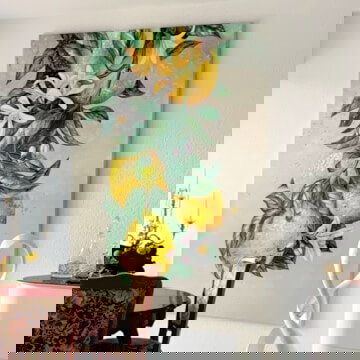 En regardant la peinture à l'huile 'In the Citrus Mist' de l'artiste Victor Zhen, on peut littéralement sentir les parfums aigre-doux des agrumes : Plusieurs citrons poussent sur une branche peinte à la main avec des feuilles vertes brillantes. Avec son design empâté, cette peinture à l'huile est particulièrement vivante et vous transporte dans des mondes méditerranéens sur une grande surface.