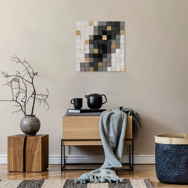 Le bois est un matériau polyvalent qui se combine bien avec d’autres matériaux. Il sera donc facile de combiner l’art du bois avec d’autres éléments d’ameublement esthétiques que vous pourrez trouver.